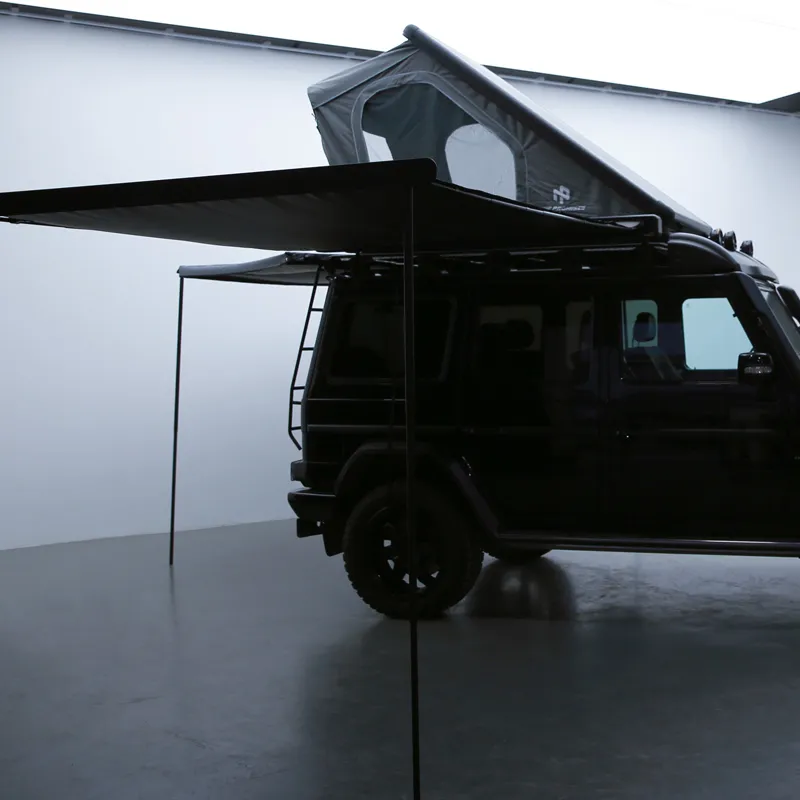 A side tent with a 270-degree rotating canopy is a type of portable shelter that attaches to the side of a vehicle, such as an SUV, truck, or van. Unlike traditional Rooftop Tents or ground tents, this design features a rotating canopy that can be adjusted to provide shade and coverage from multiple angles. The 270-degree rotation allows users to position the canopy based on the sun’s movement, wind direction, or desired view, ensuring maximum comfort in any environment.